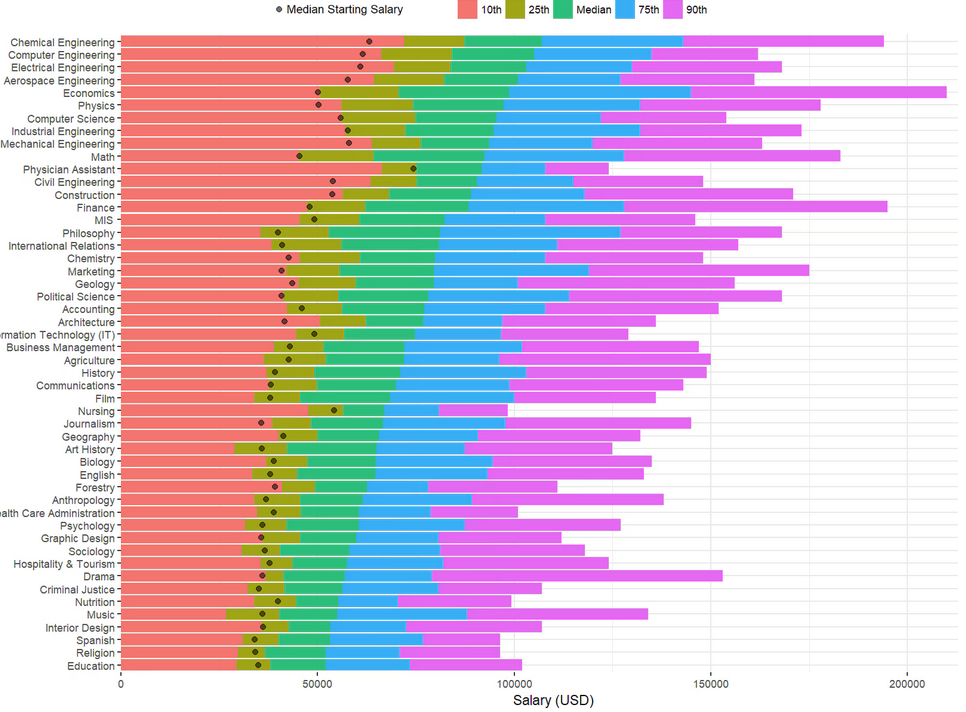 One glaring limitation of the above data is that it lumps ALL degrees from all colleges together into one pile. Various majors may pay less than others (again see the purdue dataset). It is important to look at data for your specific situation when you are considering statistics. (I also really like this figure as a conceptual tool. Mind the data source though)